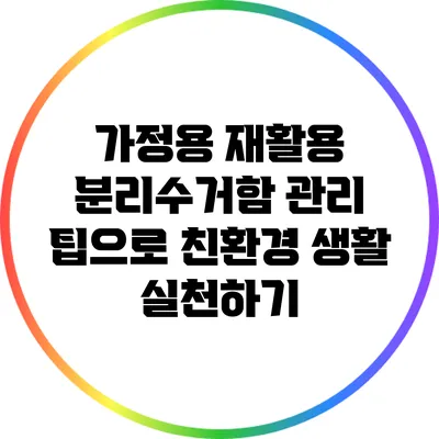 가정용 재활용 분리수거함을 올바르게 관리하는 것은 친환경 생활의 첫걸음이에요. 각자의 책임 아래 올바른 분리수거 관행을 유지한다면, 우리는 더 깨끗하고 건강한 지구를 만들어 갈 수 있어요. 지금 바로 재활용의 시작, 분리수거를 실천해보세요!