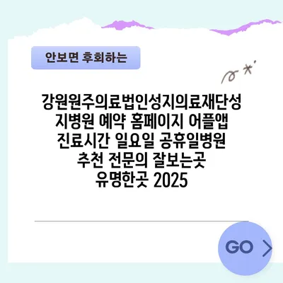강원원주의료법인성지의료재단성지병원 예약 홈페이지 어플앱 진료시간 일요일 공휴일병원 추천 전문의 잘보는곳 유명한곳 2025