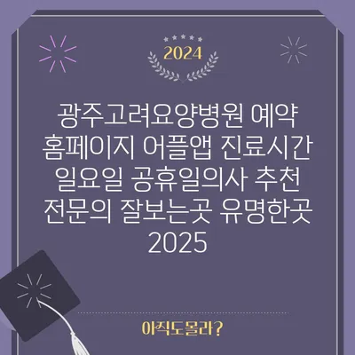 ✅ 광주고려요양병원의 예약 방법과 전문의 진료시간을 확인해 보세요.