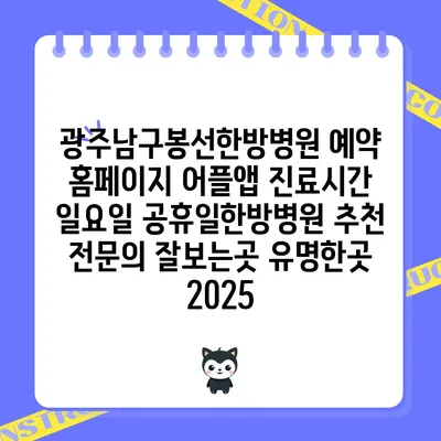 ✅ 광주남구봉선한방병원 예약 방법을 자세히 알아보세요.