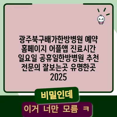 ✅ 광주북구 동운한방병원의 진료시간 및 예약 팁을 알아보세요!