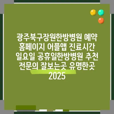 광주북구장원한방병원의 진료시간과 예약 방법을 지금 바로 알아보세요!