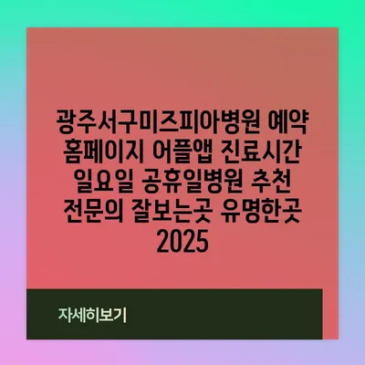 광주서구미즈피아병원 예약 홈페이지 어플앱 진료시간 일요일 공휴일병원 추천 전문의 잘보는곳 유명한곳 2025