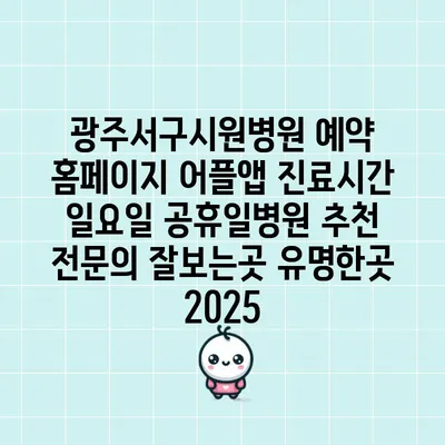 ✅ 광주서구시원병원의 진료 시간과 예약 방법을 상세히 알아보세요.