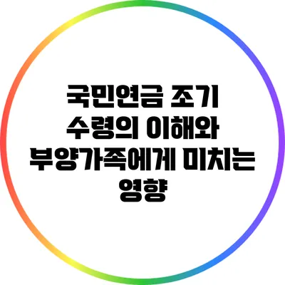 국민연금을 조기 수령하면 본인뿐 아니라 부양가족에게도 여러 영향을 미칠 수 있습니다. 특히, 가장으로서 가족을 부양하는 사람에게는 그 부담이 더욱 클 수 있습니다.