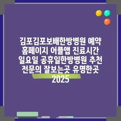 ✅ 2025년 김포의 유명 한방병원 진료시간을 확인해 보세요.