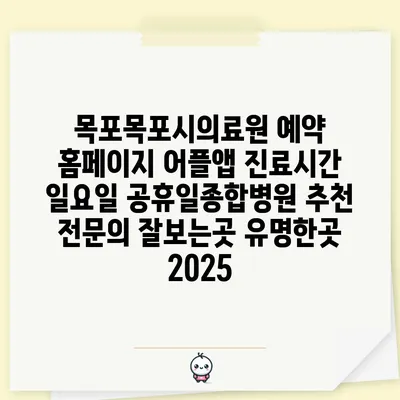 ✅ 목포시의료원의 진료시간과 예약 방법을 상세히 알아보세요.
