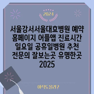 서울강서서울대효병원 예약 홈페이지 어플앱 진료시간 일요일 공휴일병원 추천 전문의 잘보는곳 유명한곳 2025
