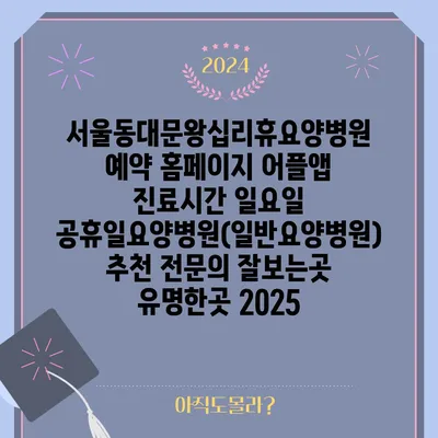서울동대문왕십리휴요양병원 예약 방법 소개