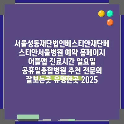 서울성동재단법인베스티안재단베스티안서울병원 예약 홈페이지 어플앱 진료시간 일요일 공휴일종합병원 추천 전문의 잘보는곳 유명한곳 2025