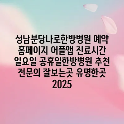 성남분당나로한방병원 예약 홈페이지 어플앱 진료시간 일요일 공휴일한방병원 추천 전문의 잘보는곳 유명한곳 2025