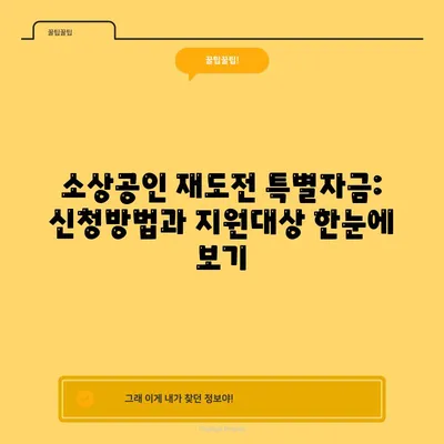 💡 소상공인 재도전 특별자금의 지원 자격과 신청 방법을 자세히 알아보세요. 💡