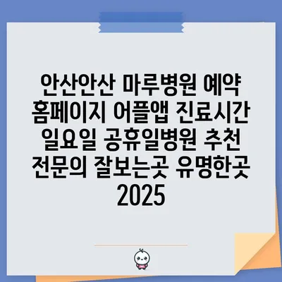 ✅ 안산 마루병원의 진료시간과 예약 방법을 자세히 알아보세요.