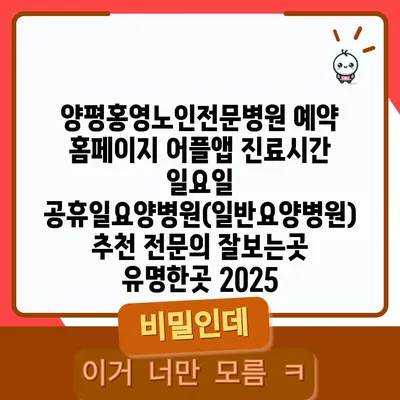 양평홍영노인전문병원 예약 홈페이지 어플앱 진료시간 일요일 공휴일요양병원(일반요양병원) 추천 전문의 잘보는곳 유명한곳 2025
