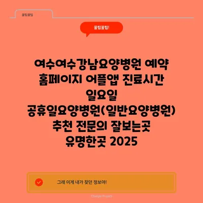 ✅ 여수여수강남요양병원의 진료시간과 예약 방법을 지금 바로 알아보세요!