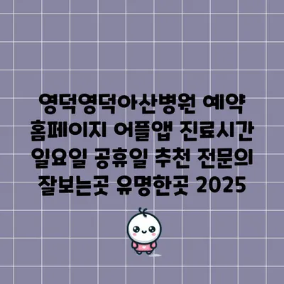 ✅ 영덕영덕아산병원의 진료시간과 예약 방법을 지금 바로 알아보세요.