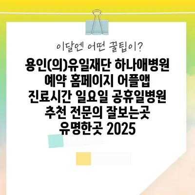 ✅ 용인 하나애병원의 예약 방법과 진료 시간을 자세히 알아보세요.