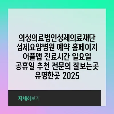 ✅ 성제요양병원의 진료시간과 예약 방법을 지금 바로 알아보세요.