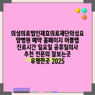 ✅ 의성요양병원의 진료 시간과 예약 방법을 지금 바로 알아보세요.