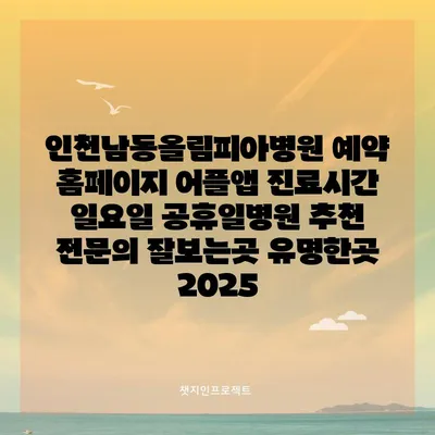 ✅ 인천남동올림피아병원의 진료시간과 예약 방법을 알아보세요.