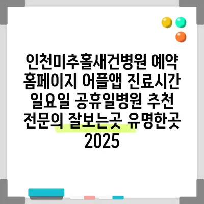 ✅ 인천미추홀새건병원의 진료시간 및 예약 방법을 알아보세요.