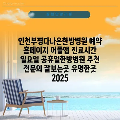✅ 인천부평다나은한방병원에서의 예약 방법과 진료시간을 자세히 알아보세요!