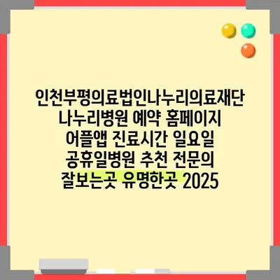 인천 부평 나누리병원 예약 방법 알아보기