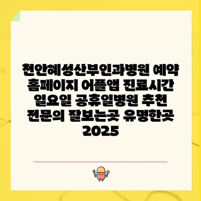 2025년 천안혜성산부인과병원 방문을 위한 필수 정보