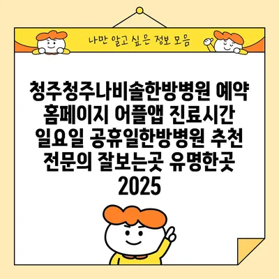 ✅ 청주청주나비솔한방병원 예약 방법을 지금 확인하세요!