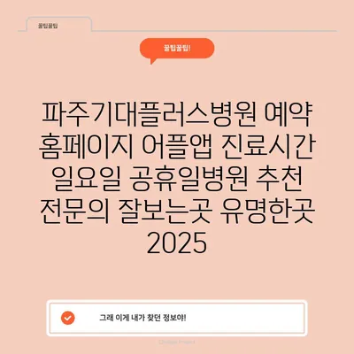 ✅ 파주기대플러스병원의 진료시간과 예약 방법을 알아보세요.