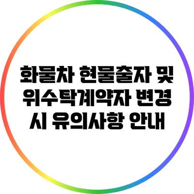 화물 운송 업계에서 현물출자와 위수탁계약자 변경은 많은 기업들이 중요하게 여기는 절차예요. 이 과정에서는 여러 가지 유의사항이 있기에, 제대로 이해하고 처리하는 것이 매우 중요해요. 특히, 계약의 안정성과 효율성을 받아보기 위해서는 세심한 점검이 필요해요. 이번 글에서는 화물차 현물출자와 위수탁계약자 변경 시 꼭 알아두어야 할 유의사항을 자세하게 살펴보도록 할게요.
