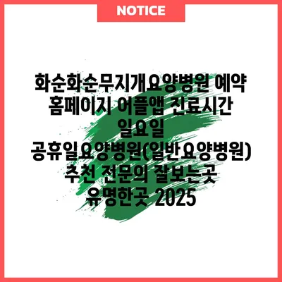 ✅ 화순화순무지개요양병원의 진료시간과 예약 방법을 알아보세요.