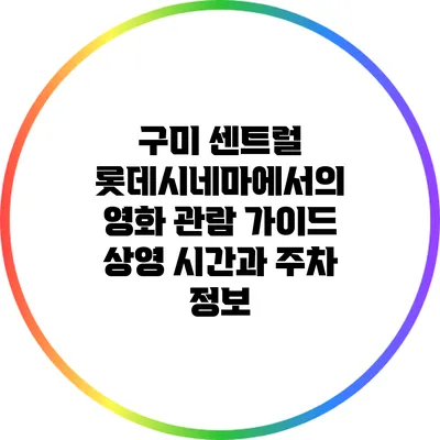 ✅ 구미 센트럴 롯데시네마의 상영 시간과 주차 정보를 한눈에 알아보세요.
