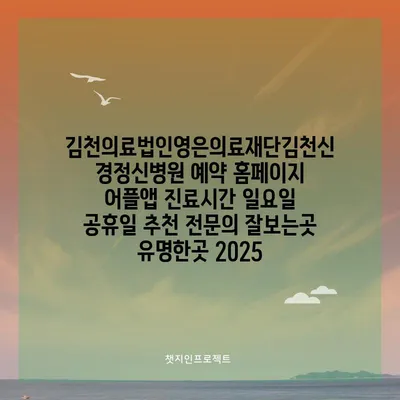 ✅ 김천신경정신병원의 예약 방법과 진료시간을 알아보세요.