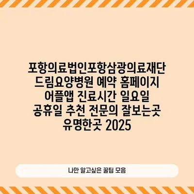 포항삼광의료재단 드림요양병원의 예약 시스템은 환자들이 보다 쉽고 빠르게 진료를 받을 수 있도록 돕기 위해 설계되었습니다. 저희 병원은 다양한 전문의를 보유하고 있으며, 일요일과 공휴일에도 환자들이 불편함 없이 진료를 받을 수 있는 환경을 제공하고 있습니다.