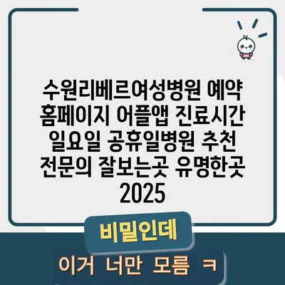 수원리베르여성병원은 2025년에도 많은 환자들에게 사랑받는 전연락들로 가득한 곳입니다. 병원 예약은 홈페이지와 어플앱을 통해 쉽고 빠르게 할 수 있으며, 언제든지 편리하게 …