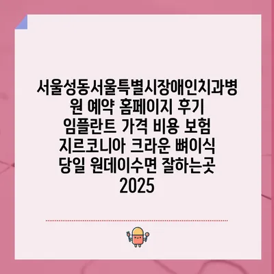 서울성동서울특별시장애인치과병원 예약 홈페이지에서 후기를 확인해 보세요. 임플란트 관련 가격과 비용에 대한 정보도 쉽게 찾아볼 수 있습니다. 보험 적용 여부에 대한 …