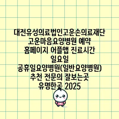 대전유성의료법인고운손의료재단고운마음요양병원 예약 홈페이지 어플앱 진료시간 일요일 공휴일요양병원(일반요양병원) 추천 전문의 잘보는곳 유명한곳 2025