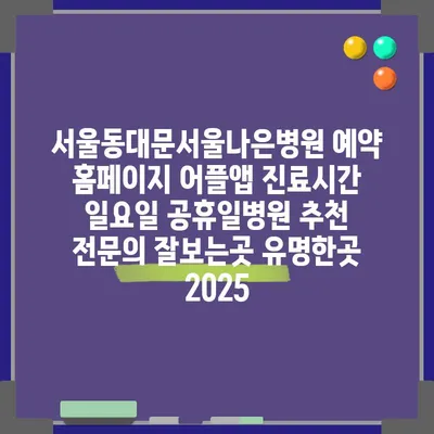 서울동대문서울나은병원 예약 홈페이지 어플앱 진료시간 일요일 공휴일병원 추천 전문의 잘보는곳 유명한곳 2025