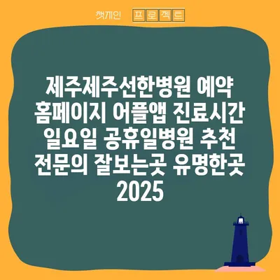 제주제주선한병원 예약 홈페이지 어플앱 진료시간 일요일 공휴일병원 추천 전문의 잘보는곳 유명한곳 2025