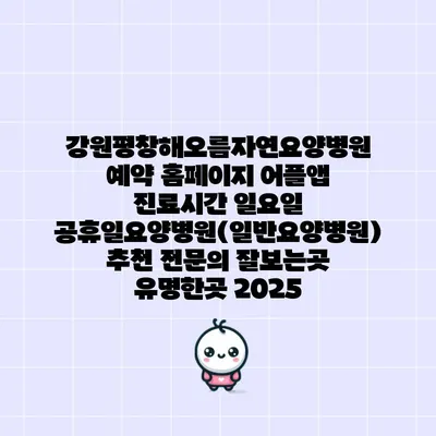 강원평창해오름자연요양병원 예약 홈페이지 어플앱 진료시간 일요일 공휴일요양병원(일반요양병원) 추천 전문의 잘보는곳 유명한곳 2025