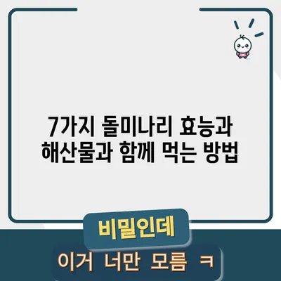 돌미나리 효능 7가지 및 부작용 해산물과 함께 드세요 돌미나리는 향이 강하고 영양이 풍부한 식품으로, 해독 작용부터 면역력 강화까지 다양한 효능이 …
