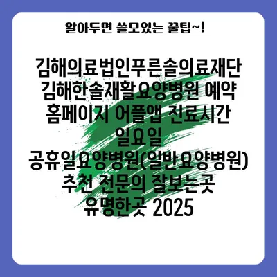 김해의료법인푸른솔의료재단 김해한솔재활요양병원은 환자 중심의 진료를 제공하는 요양병원입니다. 환자들은 예약 홈페이지와 어플 앱을 통해 간편하게 진료 예약을 할 수 있으며, 진료시간도 …