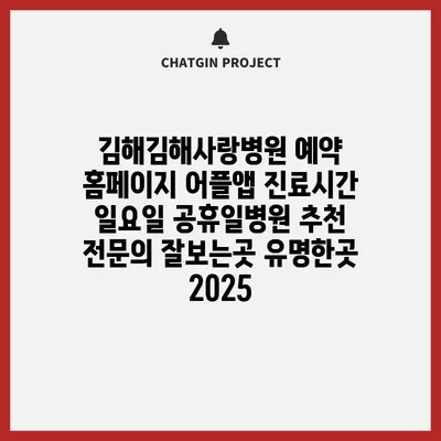 김해김해사랑병원은 예약 시스템이 잘 갖춰진 병원으로, 편리한 홈페이지와 어플앱을 통해 쉽게 진료를 예약할 수 있습니다. 진료시간은 평일뿐만 아니라 일요일과 공휴일에도 …