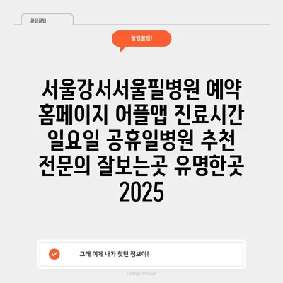 서울강서서울필병원 예약 홈페이지 어플앱 진료시간 일요일 공휴일병원 추천 전문의 잘보는곳 유명한곳 2025