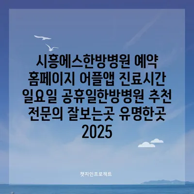 시흥에스한방병원에서는 편리한 예약 홈페이지와 어플 앱을 통해 손쉽게 진료를 예약할 수 있습니다. 우리 병원의 진료시간은 평일 외에도 일요일 및 공휴일에도 …