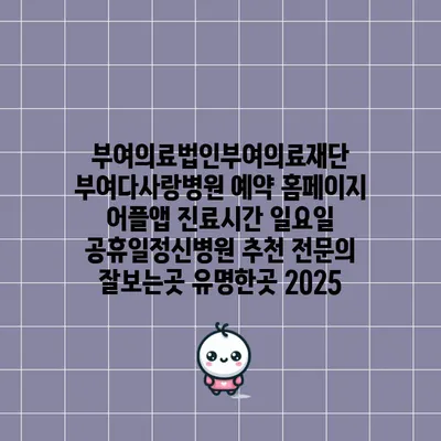 부여의료법인부여의료재단 부여다사랑병원은 정신건강 전문병원으로서, 지역 주민들에게 안정적이고 전문적인 진료 서비스를 제공하고 있습니다. 병원의 예약은 홈페이지와 어플 앱을 통해 간편하게 할 …