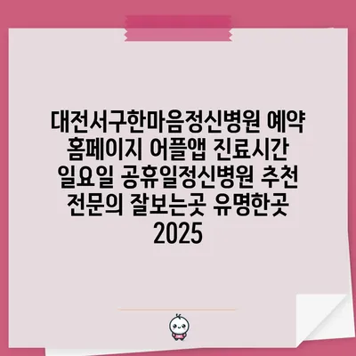대전서구한마음정신병원은 2025년에도 많은 이들에게 사랑받는 정신병원입니다. 이 병원은 환자 중심의 진료를 지향하며, 최신 예약 홈페이지와 어플앱을 통해 손쉽게 진료 예약을 …
