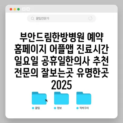 부안드림한방병원은 예약 홈페이지와 어플앱을 통해 더욱 편리하게 진료를 받을 수 있는 장점을 가지고 있습니다. 진료시간은 평일과 주말에 걸쳐 다양하게 운영되어, …