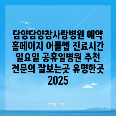 담양담양참사랑병원 예약 홈페이지 어플앱 진료시간 일요일 공휴일병원 추천 전문의 잘보는곳 유명한곳 2025